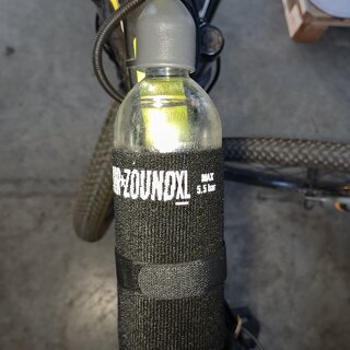 Клаксон Air Zound издает гудок громкостью в 120 Дб, и даже самый невнимательный водитель услышит его. Клаксон крепится на руле, а воздушный резервуар — на флягодержателе. Перезаряжается при помощи любого стандартного воздушного насоса: велосипедного, автомобильного, электрического, также можно воспользоваться воздухом высокого давления на станции подкачки шин на любой автозаправке. Полностью пожаробезопасен! Не наносит вреда окружающей среде! Может перевозиться авиатранспортом (в ненакачанном виде). По громкости звука не уступает горнам с одноразовыми газовыми баллончиками. Одного запаса воздуха хватает примерно на 50 гудков. Работает на обычном воздухе!